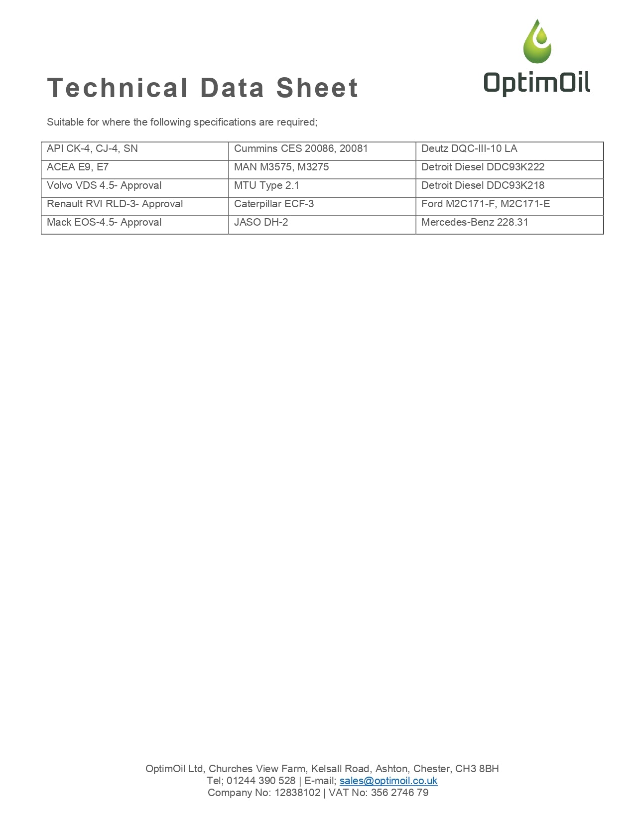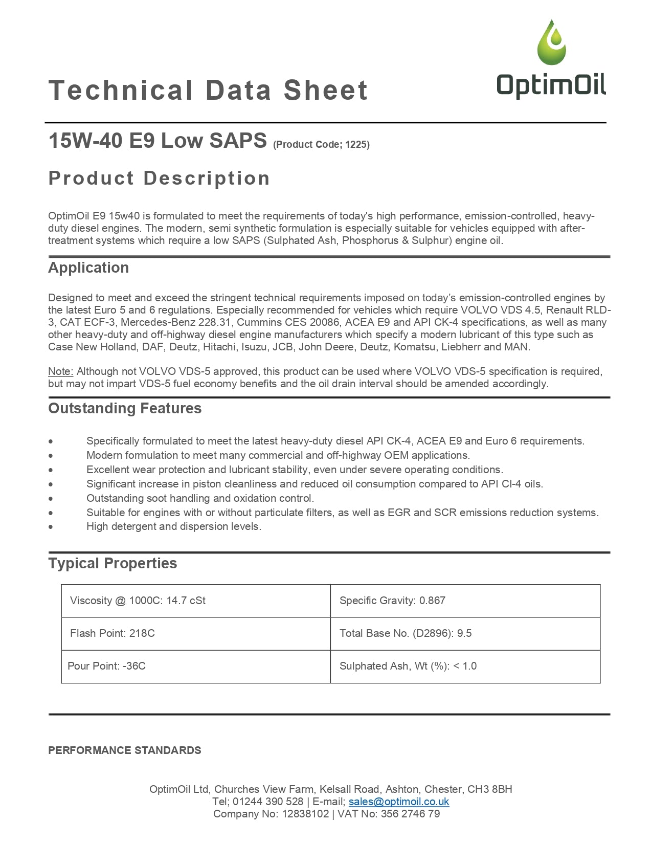 OptimOil E9 15w40 is formulated to meet the requirements of today's high performance, emission-controlled, heavy-duty diesel engines. The modern, semi synthetic formulation is especially suitable for vehicles equipped with after-treatment systems which require a low SAPS (Sulphated Ash, Phosphorus & Sulphur) engine oil.